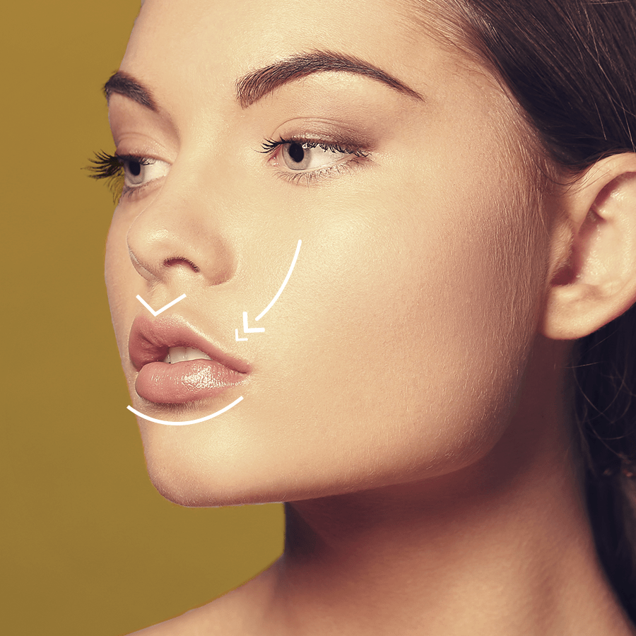 A melhora do contorno facial pode ser conseguida com Preenchimentos em locais estratégicos do rosto. Como por exemplo o preenchimento de malar (maçã do rosto) e preenchimento de mandíbula (ângulo de mandíbula e alinhamento).